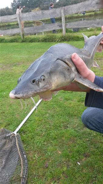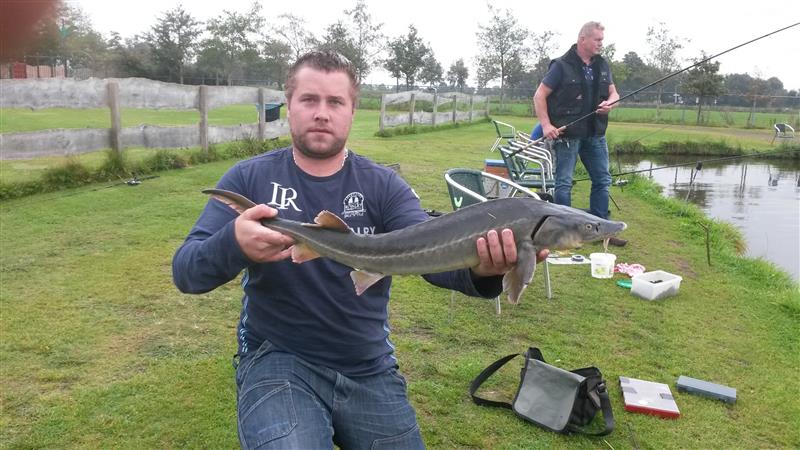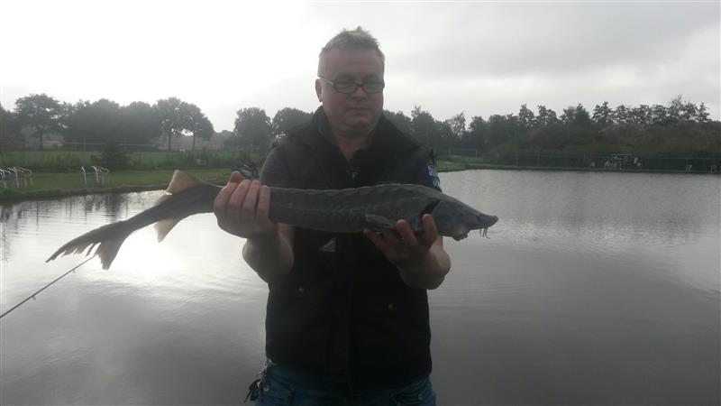 Op 14 september 2014 hebben we geprobeerd weer eens op iets anders te vissen. We zijn gaan meerval vissen in Geesteren, bij de vijvers van de Broekbeke. Er is welgeteld 1 meerval gevangen, de rest was allemaal steur (op een paar karpertjes na). Wat wel opgemerkt moet worden, is dat de steur er hier netter uit zag en dat de steur in deze vijver werkelijk waar op bijna alles beet: kaas, zalmfilet, palingworst, wormen, powerbait, etc.
